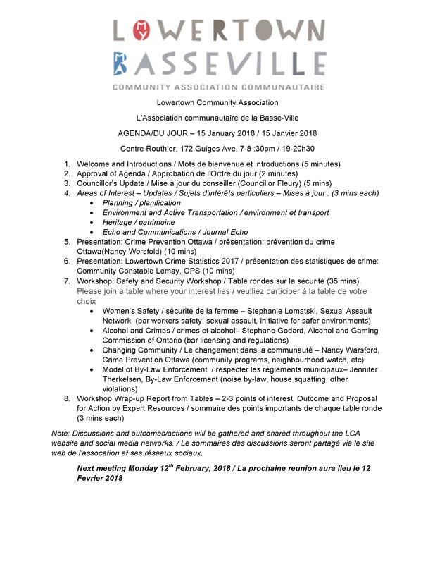Please join us Monday January 15 at 7pm at the Routhier Community Centre, 172 Guigues av. All are welcome.