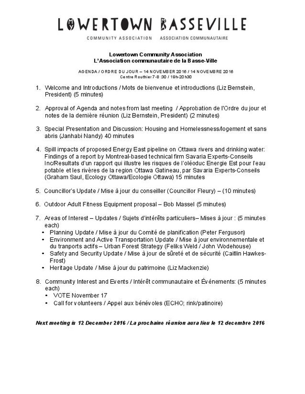 Venez-nombreux lundi soir le 11 décembre (Monday December 11) de 19h-20h30 au Centre Routhier, 172 avenue Guigues. Below & here is a copy of the Agenda. See you there!