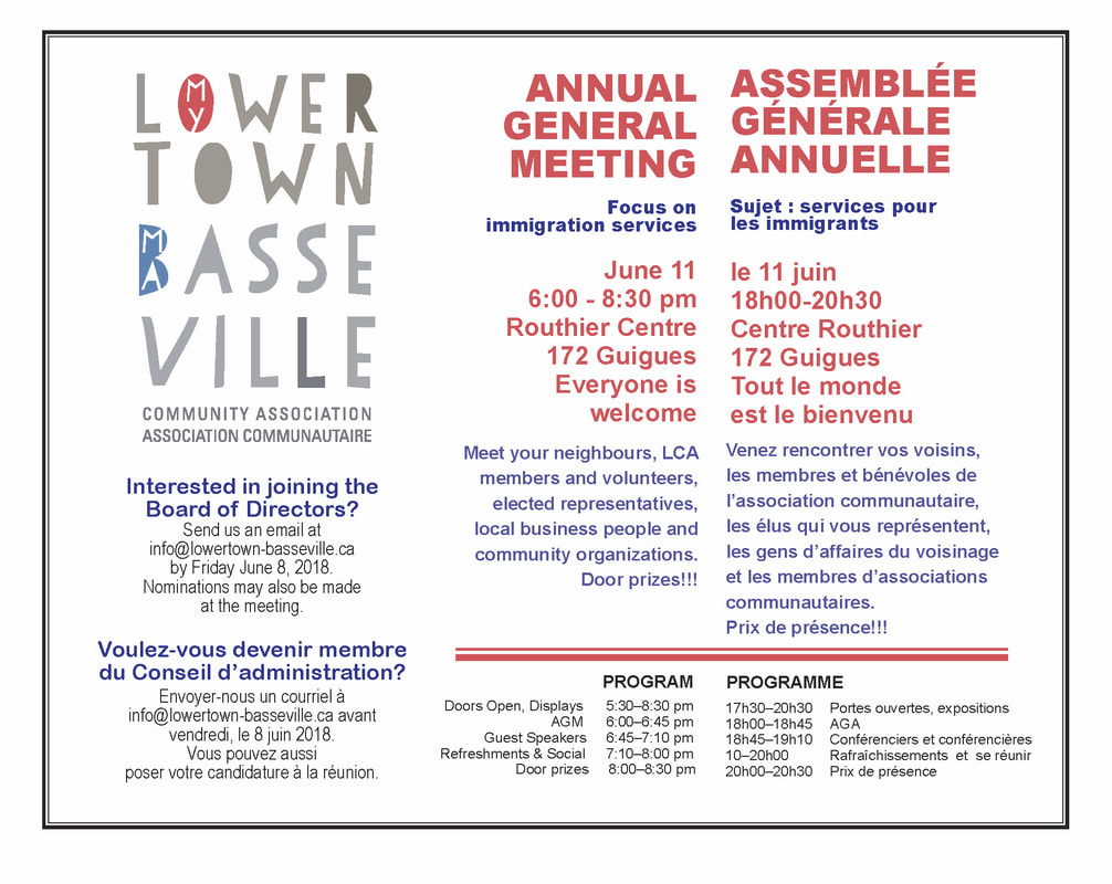Votre association communautiere a des gens qui découvrent le patrimoine de basse-ville. D’autres personnes se concentrent sur les questions de planification, la sécurité, le trafic et beaucoup plus pour faire de notre communauté le meilleur qu’il peut être. Votre association a besoin de plus de gens pour s’impliquer. Le meilleur moment pour commencer est à notre AGA.